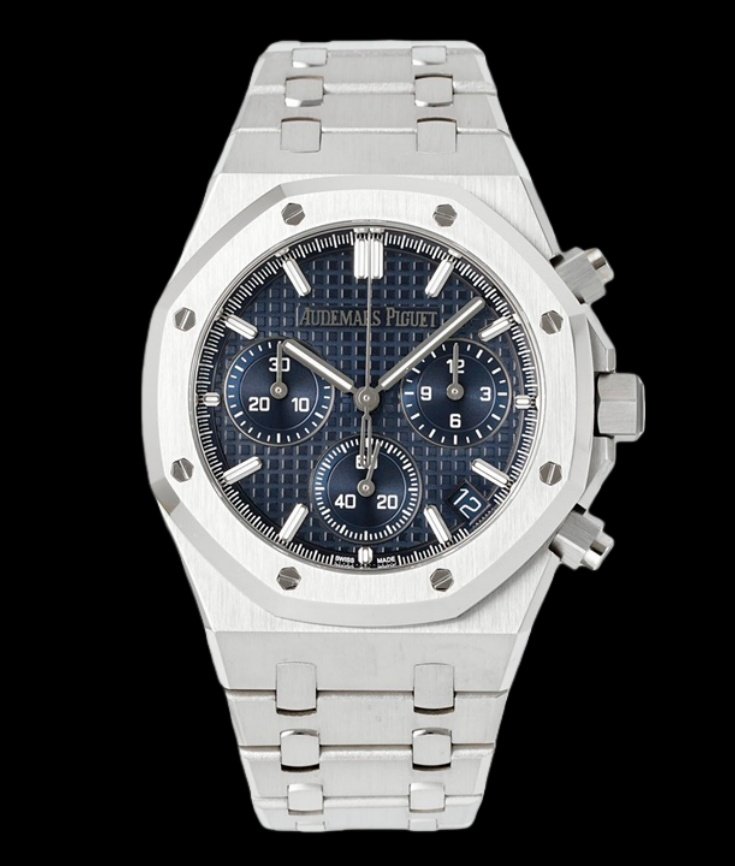 سلسلة Audemars Piguet Royal Oak 26240 عبارة عن كرونوغراف ذاتي الملء من الفولاذ المقاوم للصدأ مقاس 41 مم، ومجهز بحركة كاليبر 4401 المدمجة ذاتية التطوير والتي طورتها APS، مع كرونوغراف فلايباك وساعات ودقائق وعرض الثواني الصغيرة ووظائف التاريخ. تم تجهيز إطارها المثمّن الأيقوني بثمانية براغي سداسية، ومقترن بميناء كبير منقوش “Grande Tapisserie”، والذي يتمتع بإحساس مميز بالتسلسل الهرمي. ويواصل السوار المصنوع من الفولاذ المقاوم للصدأ المكون من قطعة واحدة التصميم الكلاسيكي لأول ساعة Royal Oak في عام 1972، والتي تتميز بطابع رياضي وأنيق في نفس الوقت. تعتمد الحركة المتكاملة المطورة حديثًا على عجلة عمودية وهيكل قابض عمودي. يبلغ تردد اهتزازها 28800 مرة في الساعة، وهو نفس الإصدار الأصلي تمامًا. لديها احتياطي طاقة يصل إلى حوالي 70 ساعة وعمق مقاوم للماء يصل إلى 50 مترًا. تجمع AP بين براعة صناعة الساعات المتقدمة والجماليات الرائدة وهي نموذج للساعات الرياضية الفاخرة. لقد تم إتقان APS بعد العديد من الاختبارات المقارنة