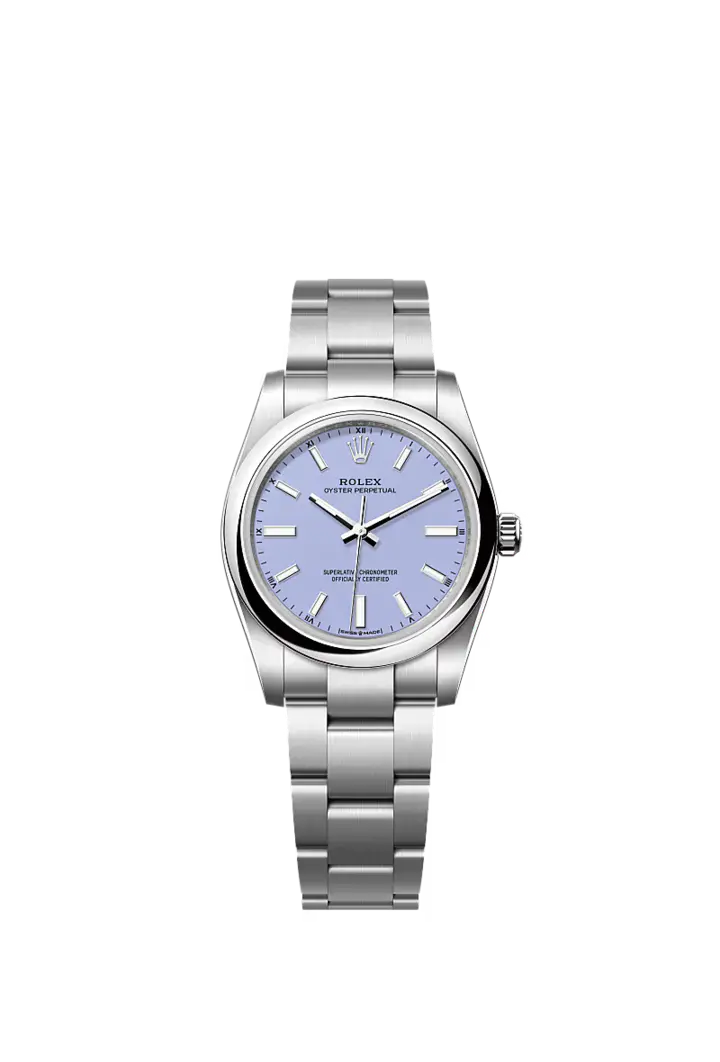 ساعة أويستر بربتشوال ٣٤ المُزوّدة بمينا أرجواني فاتح وبسوار أويستر.