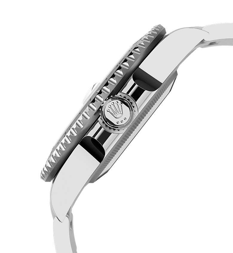 تتميز ساعة أويستر بربتشوال جي إم تي ماستر II المصنوعة من فولاذ أويستر ستيل بمينا أسود وبسوار أويستر.