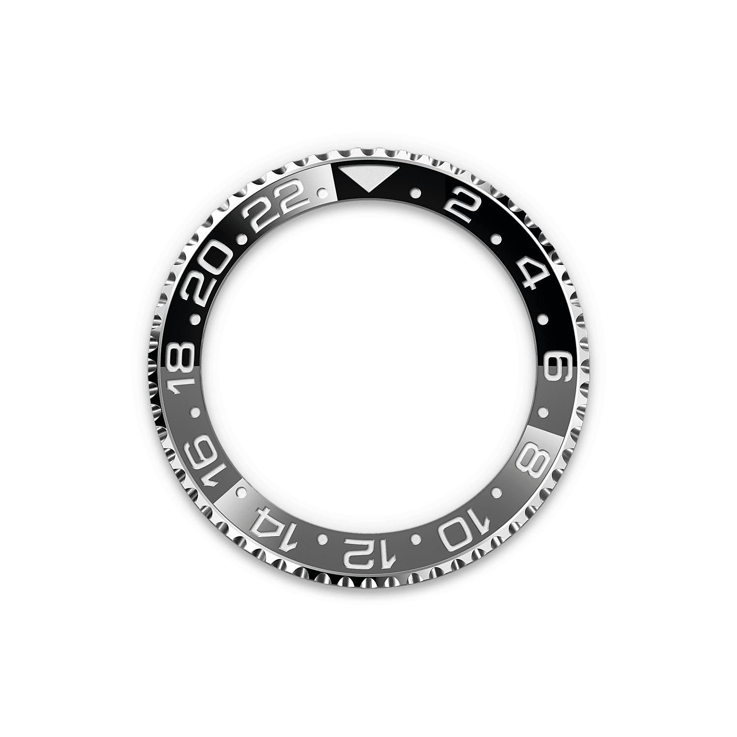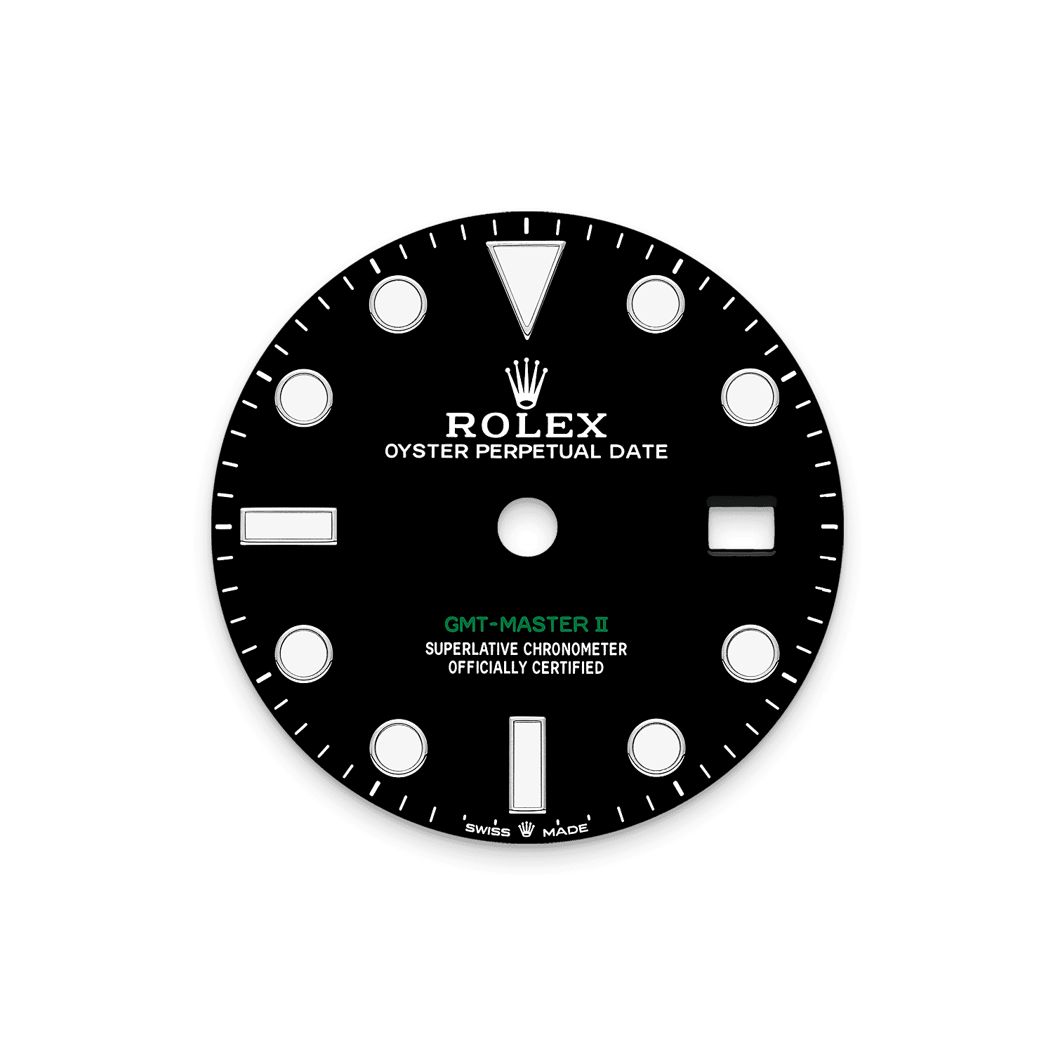 يحمل المينا المصنوع من اللك الأسود نقش جي إم تي ماستر II باللون الأخضر. ويظهر هذا اللون أيضًا على عقرب ۲٤ ساعة.