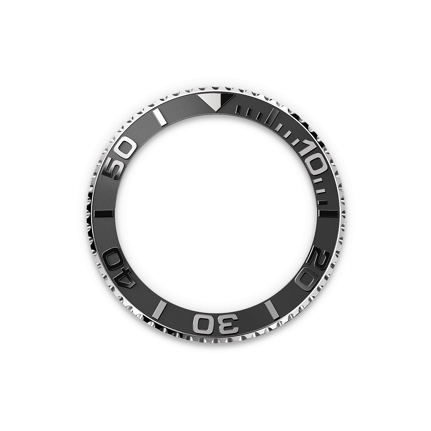 صُنع إطار ساعة يخت ماستر الدوّار باتجاهين والمُدرّج بـ ٦٠ دقيقة بالكامل من معدن ثمين أو جُهّز بترصيعة سيراكروم من السيراميك ذي التكنولوجيا العالية. تَبرز الأرقام والتدرجات النافرة والمصقولة بوضوح على خلفيةٍ مضروبةٍ بالرمل وغير لامعة.