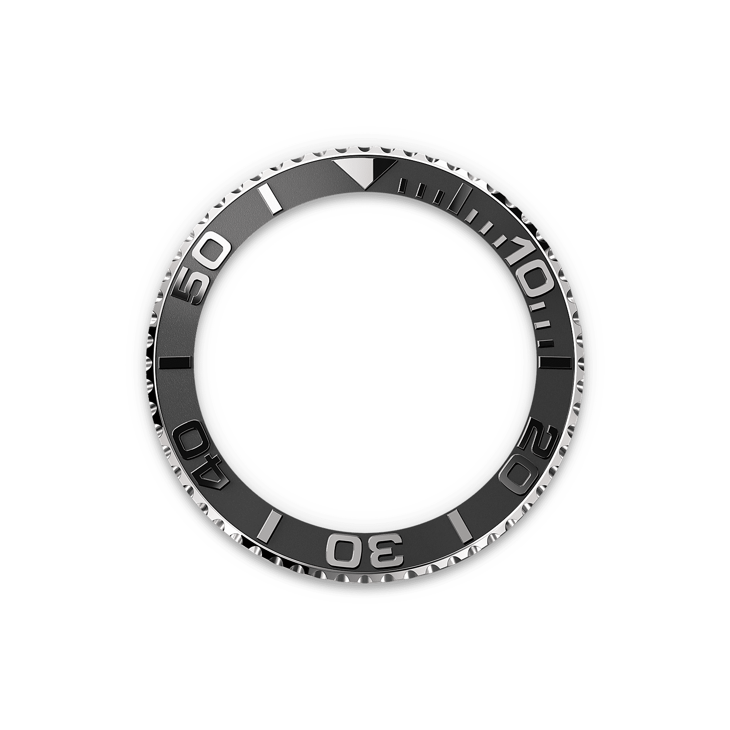 صُنع إطار ساعة يخت ماستر الدوّار باتجاهين والمُدرّج بـ ٦٠ دقيقة بالكامل من معدن ثمين أو جُهّز بترصيعة سيراكروم من السيراميك ذي التكنولوجيا العالية. تَبرز الأرقام والتدرجات النافرة والمصقولة بوضوح على خلفيةٍ مضروبةٍ بالرمل وغير لامعة.