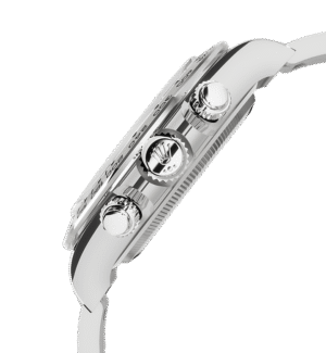 يُوفِّر إطار سيراكروم أحادي الكتلة (مونوبلوك) من السيراميك المصنوع بتقنيات تكنولوجية عالية، عددًا من الفوائد، فهو مقاوم للصدأ ومقاوم مقاومة فائقة للخدش ولا يتأثر لونه بالأشعة فوق البنفسجية. إضافةً إلى ذلك، يُوفّر الإطار الشديد المتانة هذا مقياسًا مدرجًا وواضحًا، بفضل إضافة طبقة رقيقة من البلاتين للأرقام والتدريجات باستخدام تقنية الترسيب الفيزيائي للبخار (PVD). صُنع إطار سيراكروم أحادي الكتلة (مونوبلوك) من قطعة واحدة تعمل على تثبيت البلورة بإحكام على العلبة الوسطى؛ مما يضمن مقاومتها للماء.