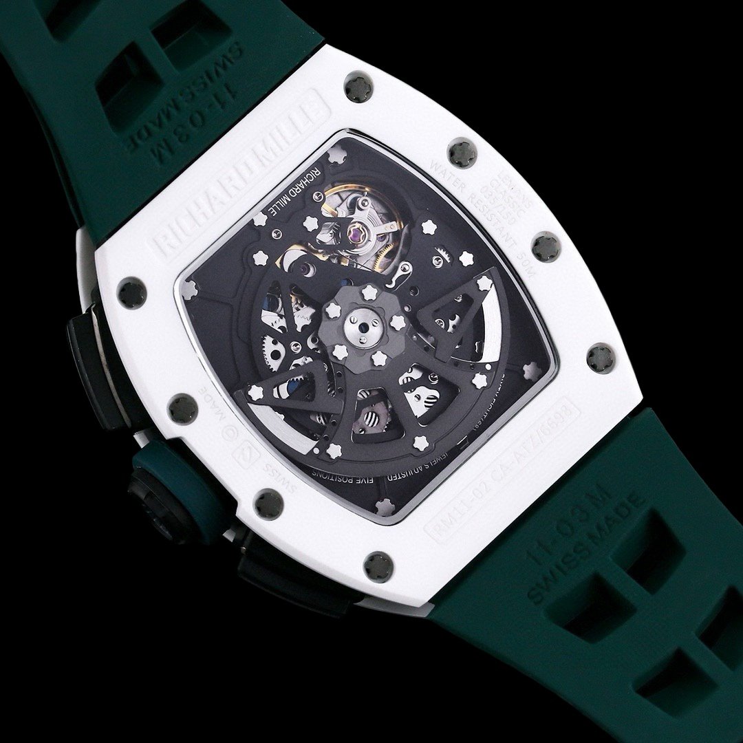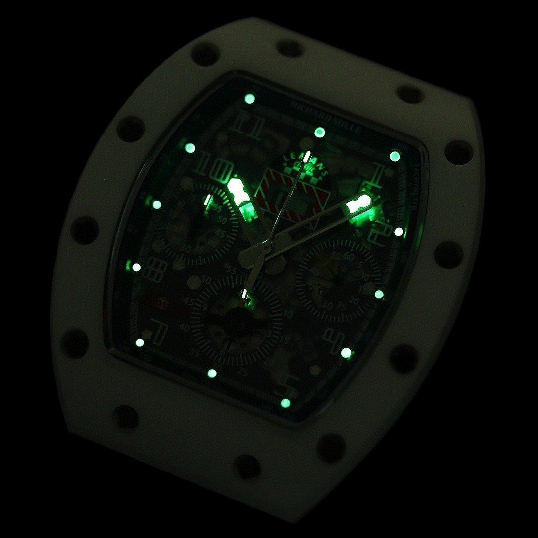 سلسلة ريتشارد ميل rm011-fm، مادة ألياف الكربون تستعيد الملمس الأصلي، السيراميك الأسود الأصلي عالي الجودة، السيراميك الأبيض يستعيد التصميم الأصلي المريح المثالي المتوافق مع السعي لتحقيق الكمال في الهندسة المعمارية المميزة للعلامة التجارية. كل مكون من مكونات rm011 هو تعبير جمالي عن وظيفته. تحتفظ ساعة rm011-fm بالشكل الأيقوني الذي يمكن التعرف عليه بسهولة، ولكن الحرفية المستخدمة لا تزال أبعد بكثير من تلك التي كانت في الماضي. أما بالنسبة للعلبة، تظهر الصورة نموذجًا من التيتانيوم، ولكن هناك أيضًا إصدارات من الذهب الوردي والتيتانيوم للاختيار من بينها، ولكن بغض النظر عن أي منها، فهي تتمتع بسطح ناعم ناعم، مقترن بحواف مصقولة، مما يظهر تباينًا حادًا. وهي مجهزة بحركة ميكانيكية كرونوغراف 7750، وتتميز بوضوح بخطوط وظيفية (startstop وresetfly-back). تصميمها مستوحى من الدواسات الموجودة في سيارات السباق F1. كل هذه التغييرات التحسينية تجعل ساعة الكرونوغراف الأوتوماتيكية rm011-fm ذات الكرونوغراف المرتد أكثر رياضية وعصرية من الطراز السابق.