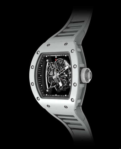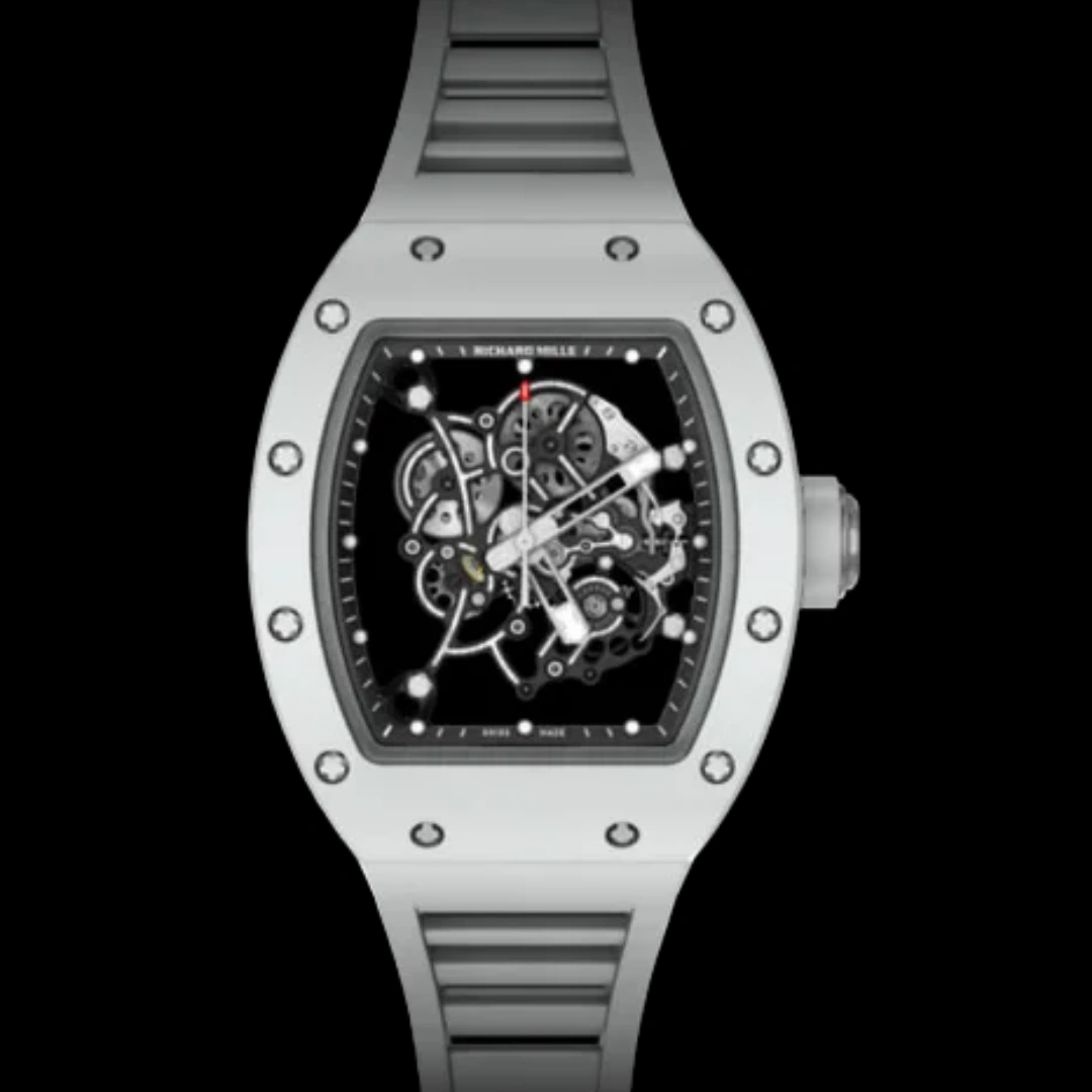تم تصميم هيكل الطراز RM 055 الفريد ليلبي المتطلبات الصارمة للرياضيين. لذلك يصنع حزام الساعة السيراميكي من ATZ من أنبوب مسحوق الألومينا المحقون تحت ضغط يقارب 2000 بار. يزيد الحقن عالي الضغط من صلابة المادة بنسبة 20% إلى 30% ويقلل مساميتها إلى أدنى حد ممكن.