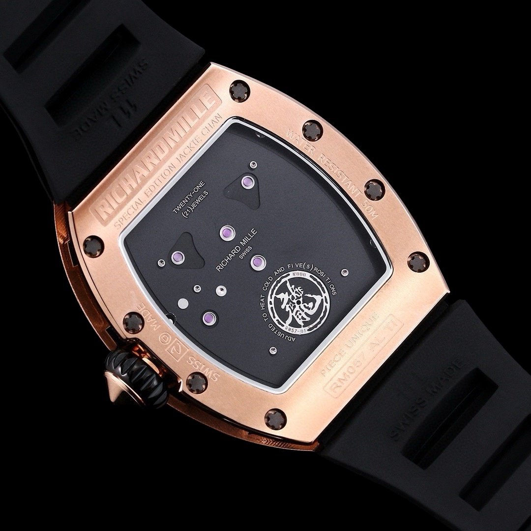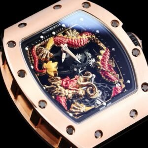ريتشارد ميل rm057 ساعة جاكي شان بانلونغ تو دولاب الموازنة! تستخدم بجرأة مواد ذات أداء جديد لتمديد الوقت الفاخر والرائع. الفن، الاندماج المثالي بين التكنولوجيا المتقدمة والحرفية اليدوية الرائعة، قضاء ساعات لا تحصى في نحت الجسم يدويًا. تنين ذهبي مغطى بمقاييس ملونة، مع خمسة مخالب تنين أصابع تمسك جبيرة التوربيون بإحكام، مهيب ومهيب، حافة لوحة القاعدة منقوشة بتوقيع جاكي شان الدائري الذي يمثل الصداقة العميقة بين علامة ريتشارد ميل التجارية وجاكي شان. تعتمد الحركة حركة توربيون يدوية دقيقة ومستقرة. عرض العلبة 45 ملم والطول 50 ملم. وهي مجهزة بمشبك أصلي قابل للطي أوتوماتيكيًا، وهو فريد من نوعه. لقد جلب الإبداع والابتكار الجريء للعلامة التجارية إلهامًا وتأثيرًا جديدًا لصناعة الساعات.