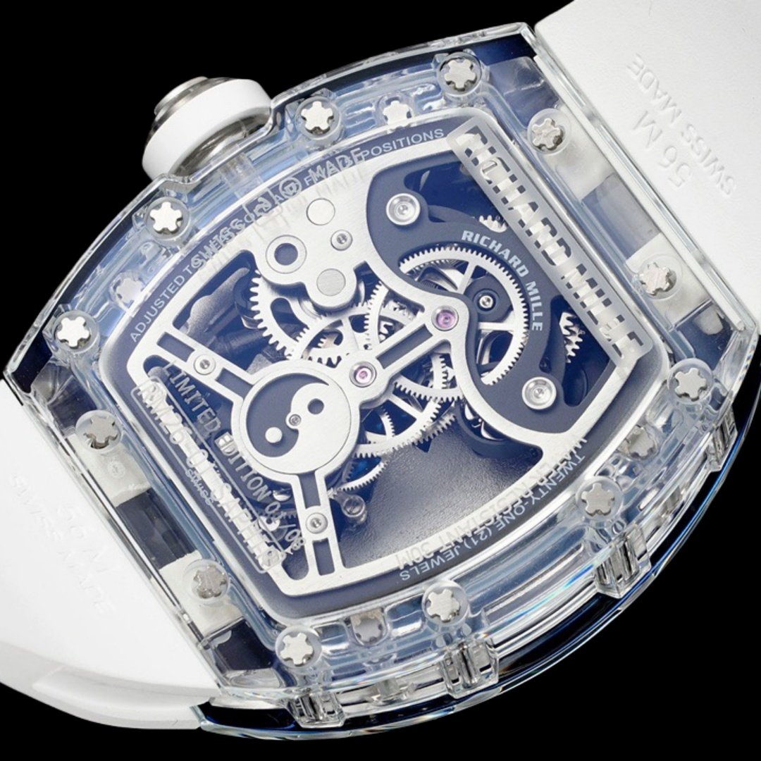 ريتشارد ميل RM35-01 هي حركة RMUL 3 الشهيرة المكونة من قطعة واحدة والتي أصدرت أحدث طراز من المواد الكريستالية الإبداعية RM35-01، والذي كان دائمًا نموذجًا شائعًا في سوق مبيعات العلامة التجارية RM. ويسعى إليه العديد من المشاهير والأثرياء. تسعى الصناعة أيضًا إلى تحقيق التميز وتحسين التفاصيل باستمرار لتزويد كبار المتحمسين بحالات فتح الصناديق. العلب العلوية والمتوسطة والسفلى مصنوعة من مادة كريستالية شفافة. الخصائص هي: منظور واضح ورطب وشامل. البراغي: بعد التفجير بالرمل بمايكرو تيتانيوم، تزداد صلابة فيكرز ويظهر السطح. حركة رمادية رملية: حركة متكاملة RMUL3، زنبرك توازن متحرك حقيقي، ممتص صدمات من الياقوت الأبيض على سطح الحركة، ممتص صدمات من الياقوت الأبيض وكومة خارجية قابلة للتعديل في الجزء السفلي من الحركة، تروس حركة حقيقية، تروس سوداء كربونية عند الساعة 12، وداعًا للخشب الرقائقي المزيف. حجم الحركة حوالي: 51 مم طول، 42.70 مم عرض، 15.8 مم سمك. الحزام: مادة مطاط الفلور الطبيعي، تصميم مريح صديق لليد وصديق للبشرة. الإبزيم: سهل الارتداء، إبزيم قابل للطي برأسين على شكل ورقة زنبركية.