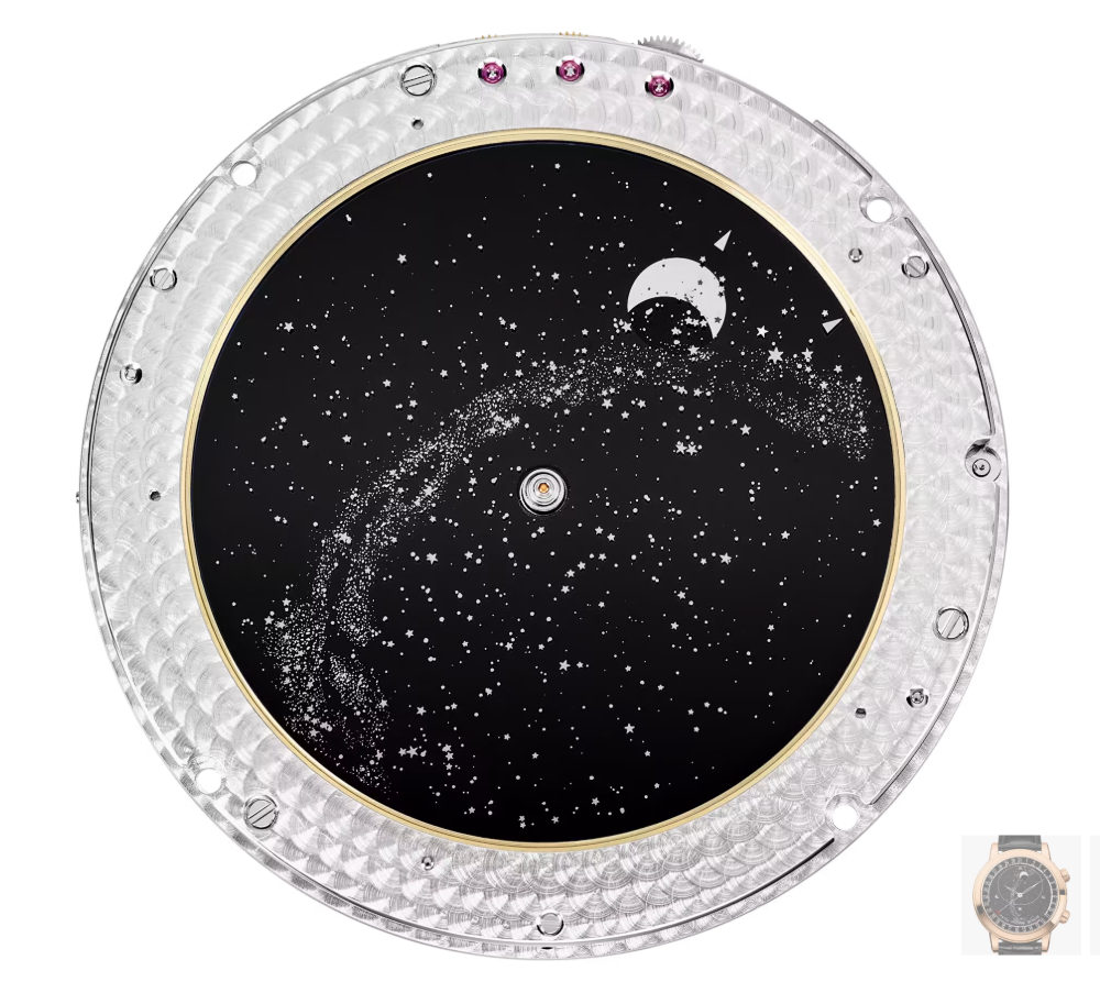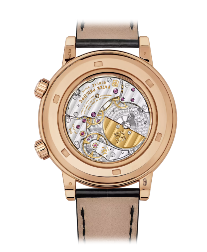 ذهب وردي. القطر: 44 ملم. السماكة: 10.595 ملم. مقاومة للماء حتى 30 متر. ظهر علبة من كريستال الزفير.