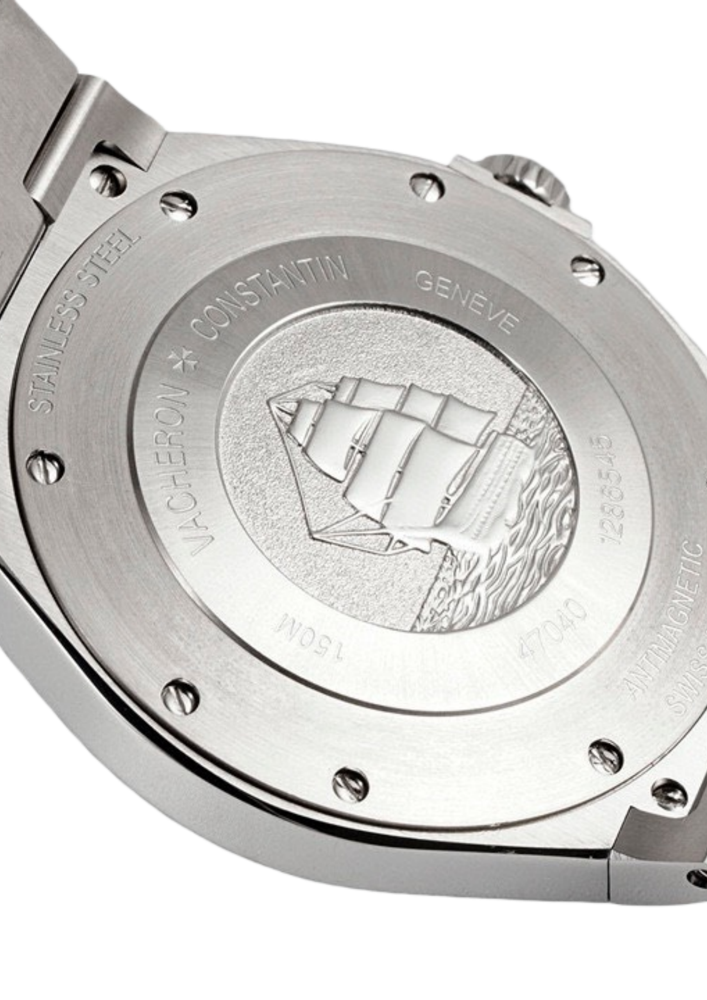 ساعة سلسلة Vacheron Constantin 47040 هي ساعة تجمع بين الإحساس الحقيقي بالرياضة والجماليات القوية مع التشطيبات الفاخرة والحركات الراقية وسهولة الارتداء. العلبة المميزة مقاس 42 مم مع العروات المدمجة والإطار المالطي المتقاطع الشكل. يتم عرض الساعات والدقائق والثواني على المحور المركزي، ويتم عرض التاريخ المخفي في النافذة عند الساعة 4:30. تمتلئ العلبة المصنوعة من الفولاذ المقاوم للصدأ والعقارب وعلامات الساعة المصنوعة من الذهب عيار 18 قيراط بمادة مضيئة لزيادة وضوح القرص. بفضل التاج اللولبي والعلبة الخلفية القوية، فهي مقاومة للماء حتى عمق 150 مترًا ومختومة بشارة “عبر البحار”. تتميز العلبة بحماية مدمجة من الصدمات وخصائص مضادة للمغناطيسية، وذلك بفضل قلب من الحديد الناعم الذي يقاوم المجالات المغناطيسية التي يمكن أن تلحق الضرر بالحركة. بفضل الحركة الأوتوماتيكية 1226SC ذات العيار الرفيع 3.25 ملم، فإن هذه الساعة رفيعة للغاية بسمك 9.7 ملم فقط. تتكون هذه الآلية الرقيقة نسبيًا بسمك 3.25 ملم من 143 جزءًا، وتعمل بتردد 4 هرتز (28800 مرة في الساعة) وتتمتع باحتياطي طاقة يصل إلى 40 ساعة. تقدم السلسلة بأكملها خيارات من الأشرطة والأحزمة الفولاذية، والتي يمكن تبديلها بين الأنماط الرياضية أو العصرية وفقًا لاحتياجات الملابس اليومية.
